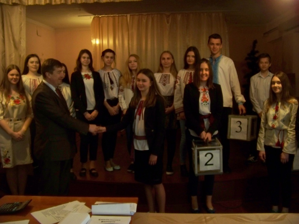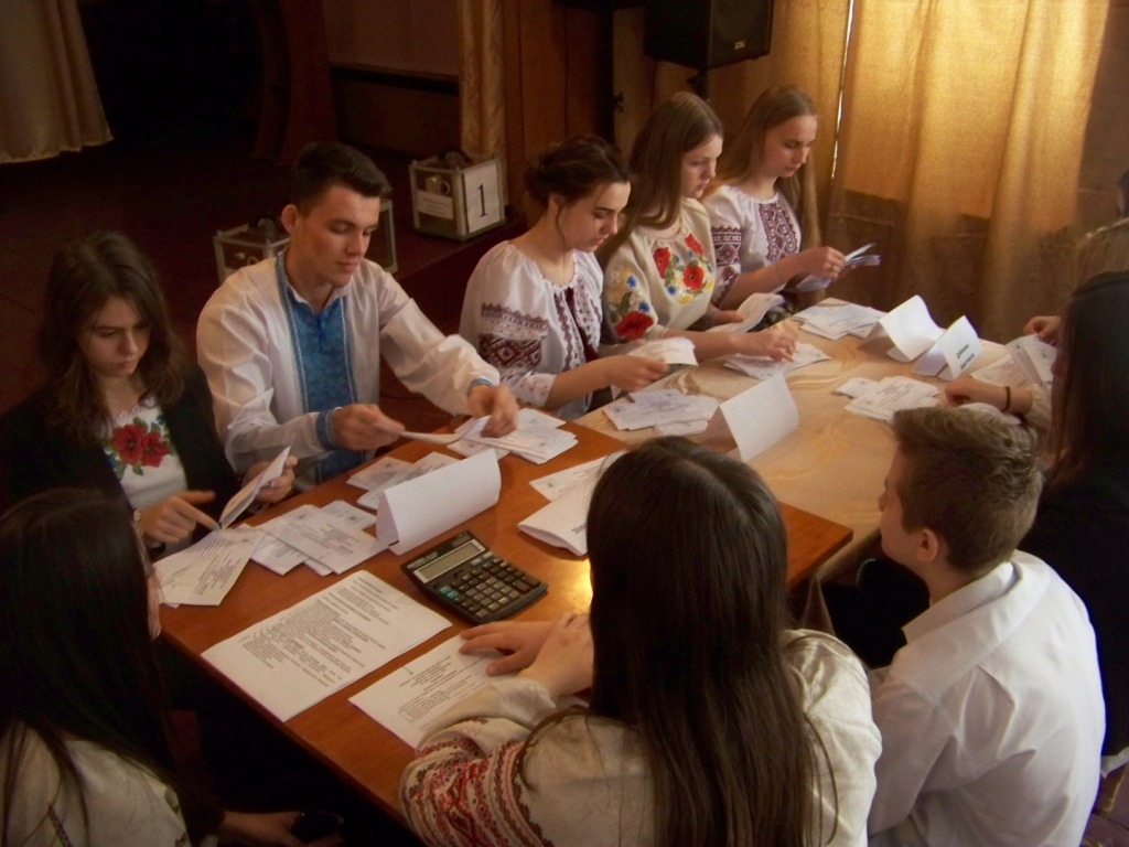 • члени виборчої комісії: Швидун Діана, 10-А клас;  Николів Віталій, 9-А клас; Мочерад Юлія, 9-Б клас; Сеніцка Анастасія, 8-А клас; Колюбінська Софія, 8-В клас; Фльорко Андріана, 8-Г клас; Кусмина Вікторія, 9-В клас; Піяйко Олег, 8-Б клас.