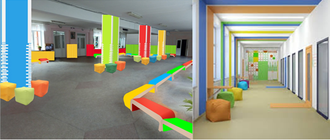 зміна дизайну вестибюлю, облаштування в шкільних коридорах сучасних зон відпочинку.