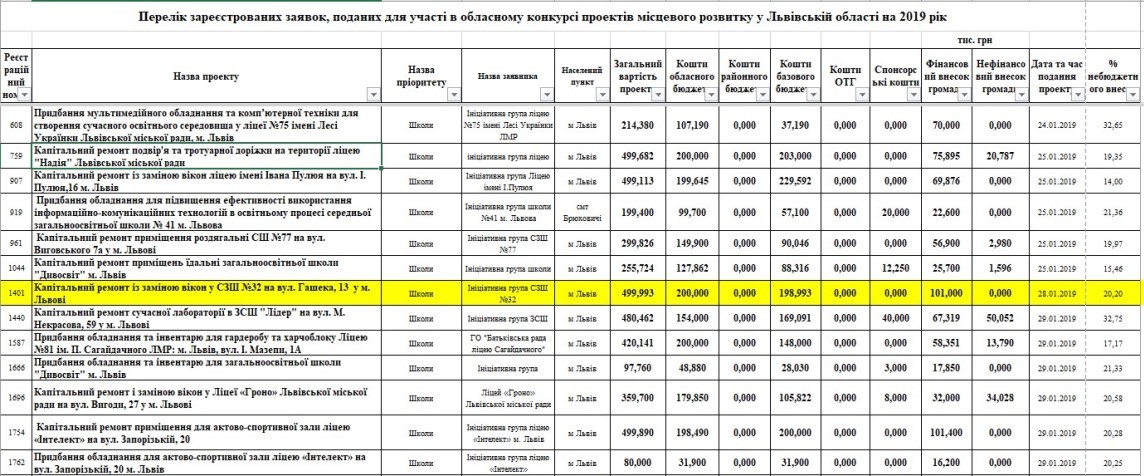Брав участь. За рішенням конкурсної комісії проект набрав 27 балів і не ввійшов до переліку проектів – потенційних переможців.