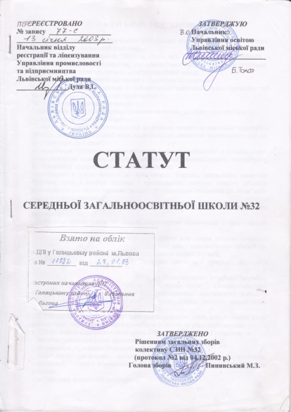 СТАТУТ СЕРЕДНЬОЇ ЗАГАЛЬНООСВІТНЬОЇ ШКОЛИ №32