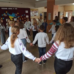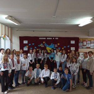 21 вересня 2022 року з нагоди Всесвітнього дня миру учні 6-Г класу провели акцію «Перемога України = Мир». Під час заходу учасники дізналися історію започаткування знаменної дати, оформили у вестибюлі школи однойменну інсталяцію, почепивши символічних голубів – вісників мирного життя після перемоги над ворогом, провели челендж «Україні бажаю…».