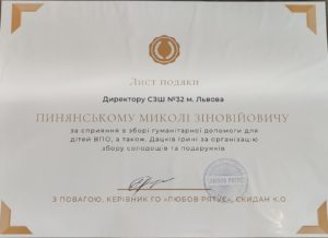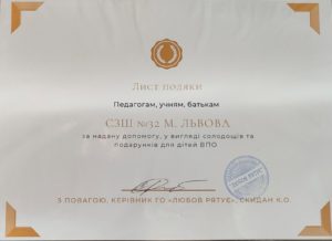 З 29 листопада до 8 грудня 2022 року учні СЗШ №32 долучилися до участі в Благодійній ініціативі #ЩедрийВівторокДіти.