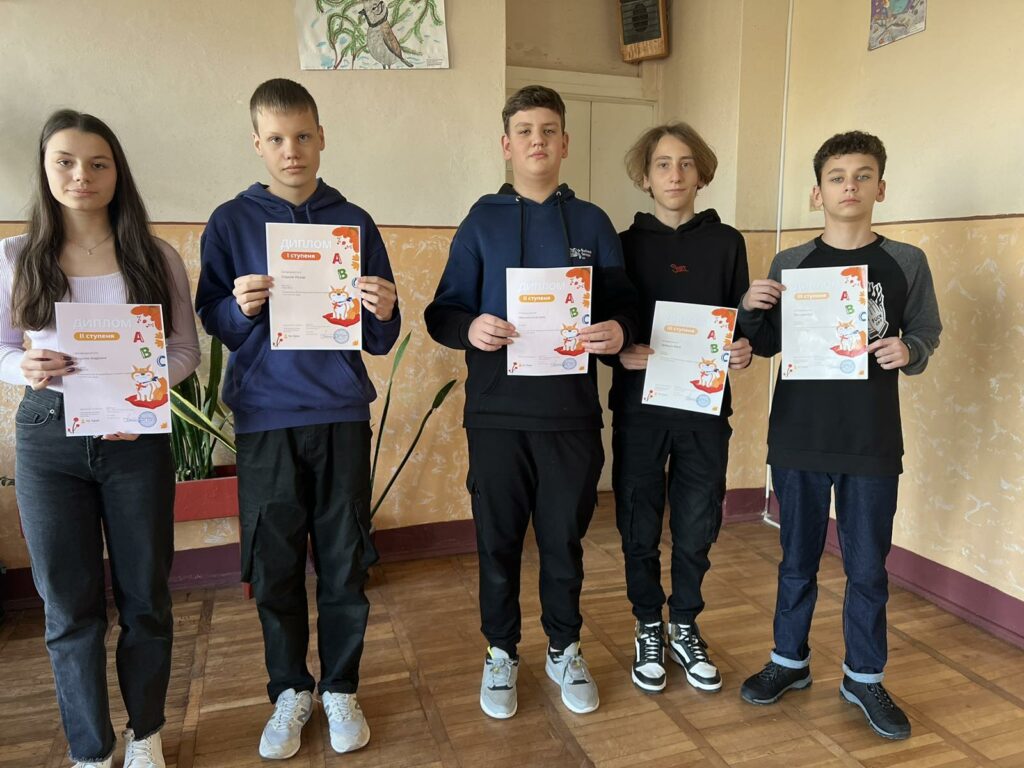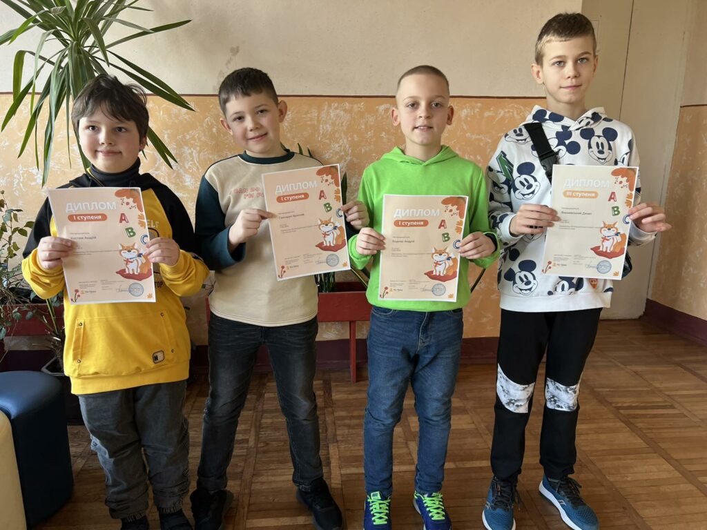 диплом І ступеня: Герасимов Дмитро, 5-Г клас, Яводчак Софія, 5-Г клас, Коростенський Андрій, 8-Б клас, Кравець Роман, 8-Б клас;