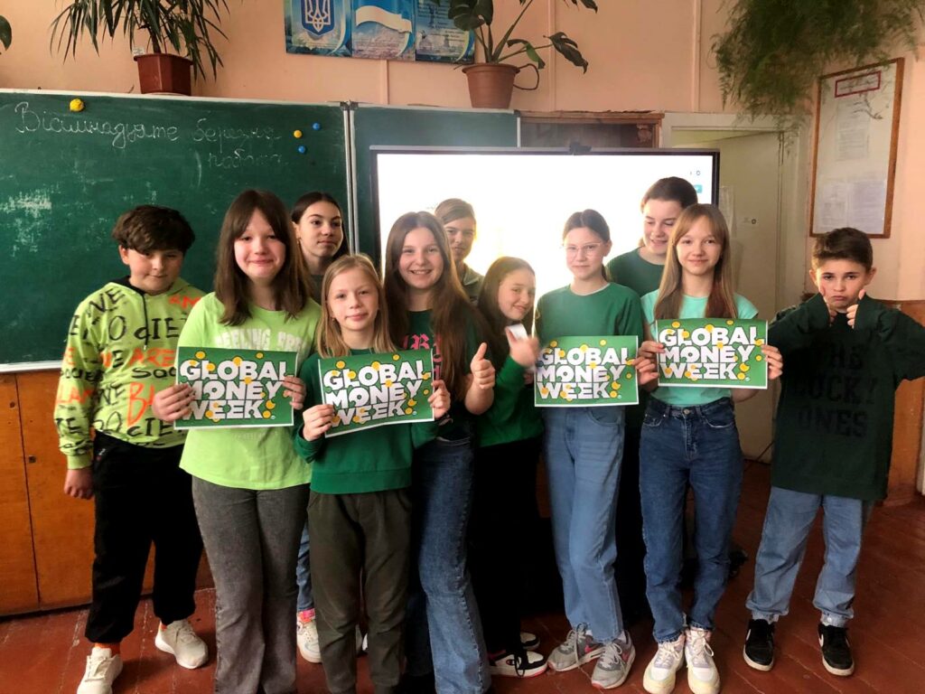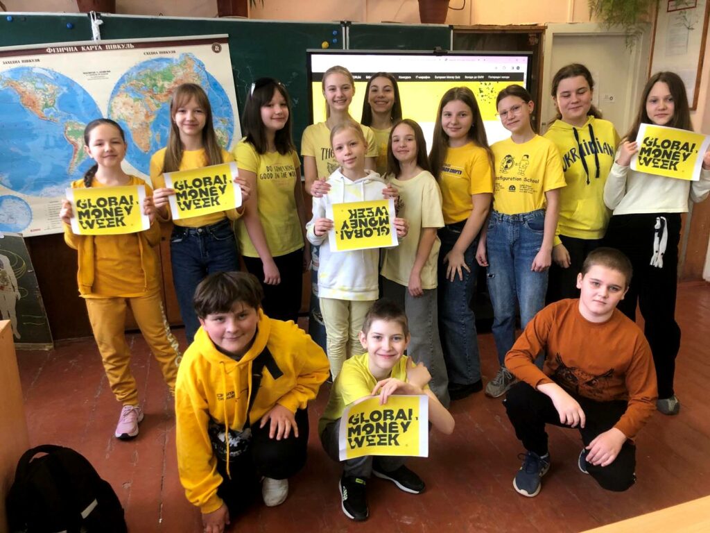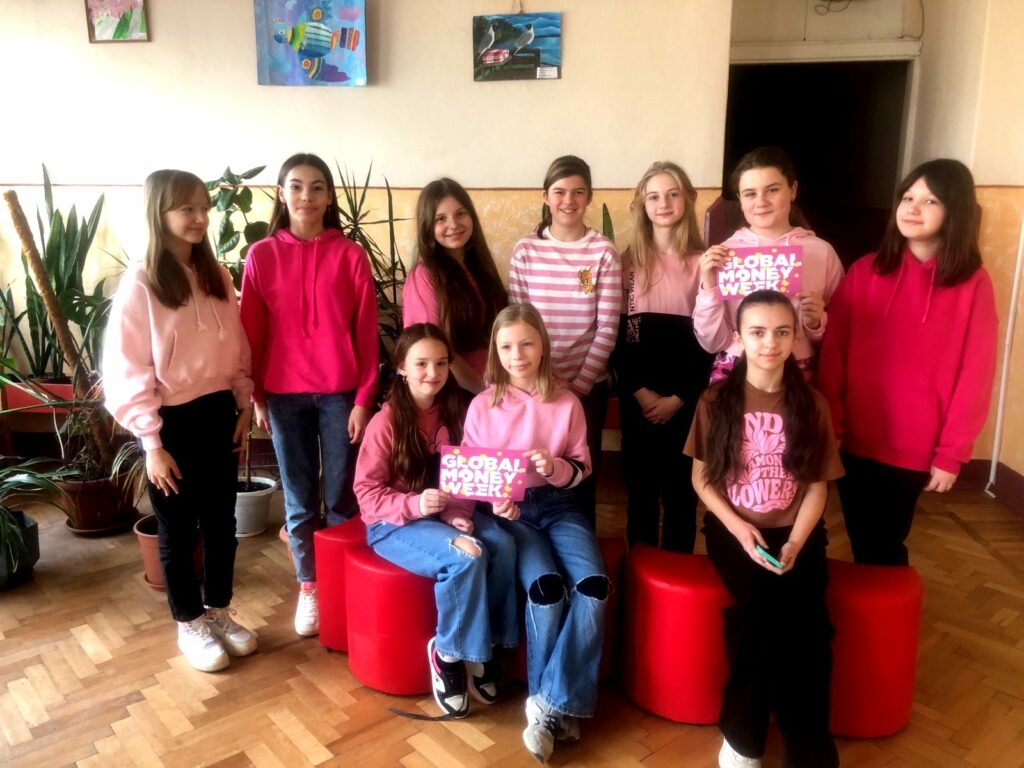 • челендж “ЯСКРАВИЙ GLOBAL MONEY WEEK”. Щодня школярі виконували завдання, одягнувшись в один із визначених організаторами кольорів логотипу Global Money Week – зелений, жовтий, білий, рожевий, синій (учні 6-Д класу; класний керівник Левус Л.М.);