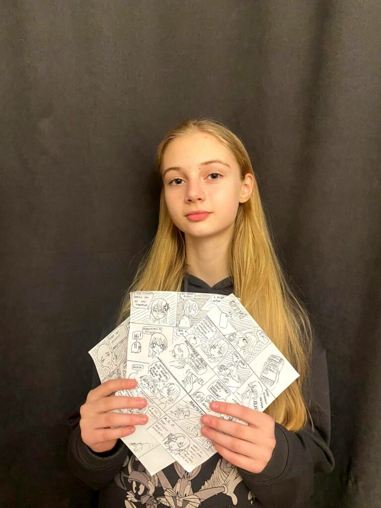 • конкурс коміксів “Захист особистих фінансів” (учениці 7-А класу Сорока Анна та Швед Софія; учениця 6-Д класу Одинцова Олександра; учитель образотворчого мистецтва Круковська М.Ю.);