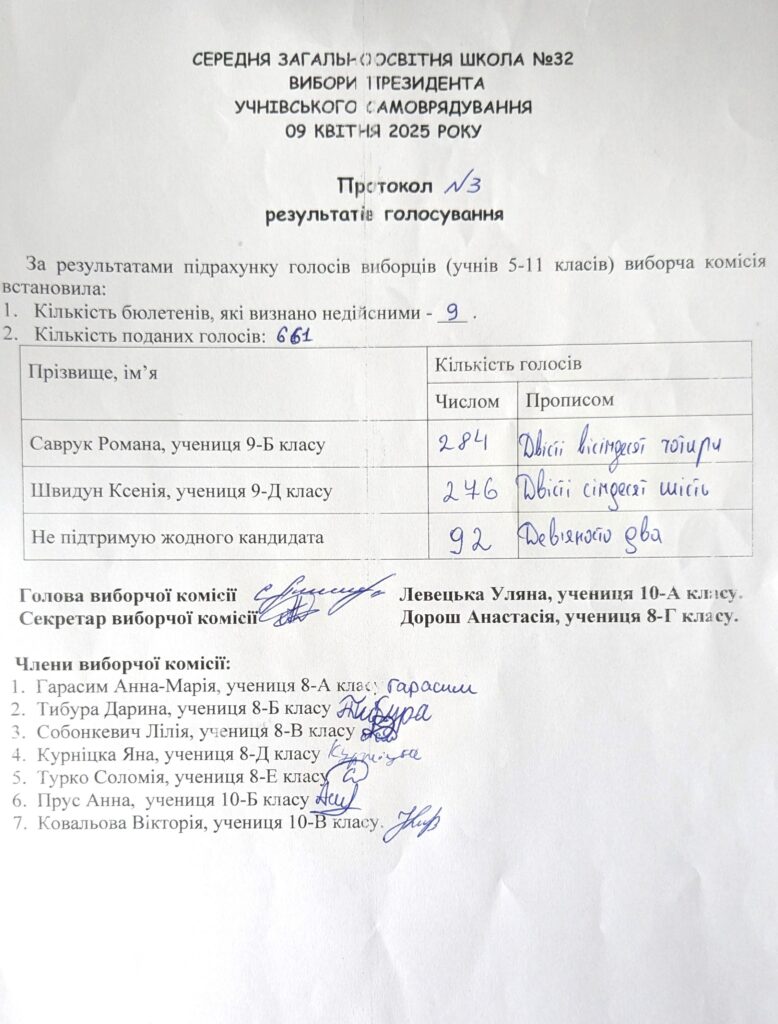 Сьогодні, 09 квітня 2025 року, у школі відбулися вибори президента учнівського самоврядування.