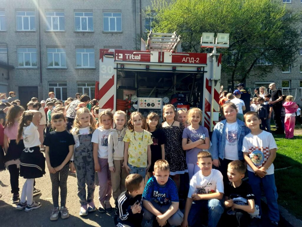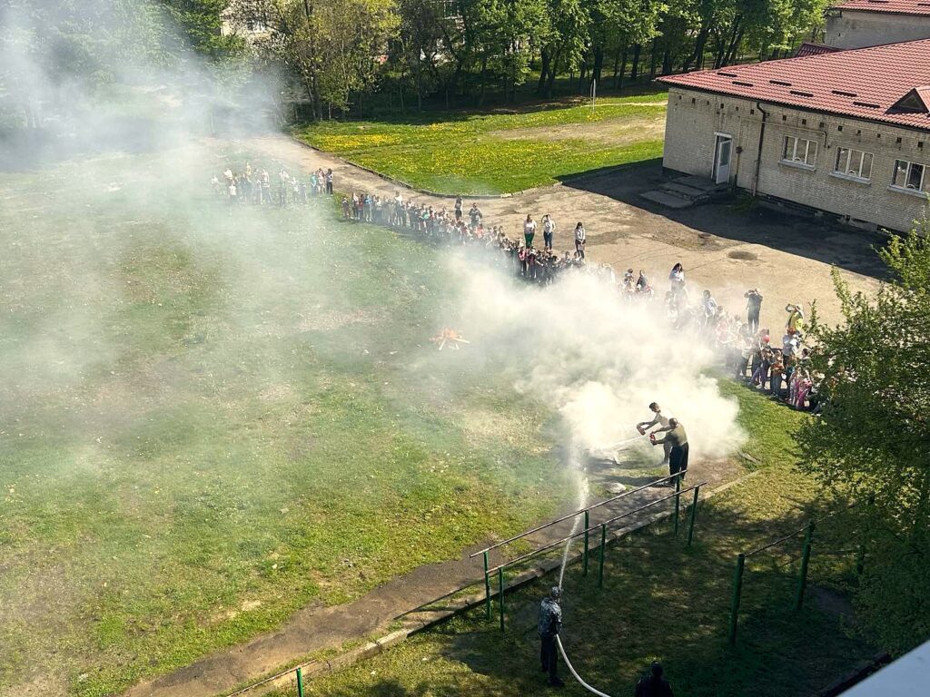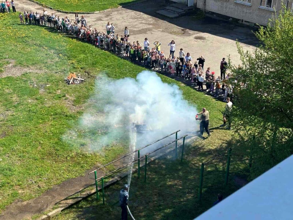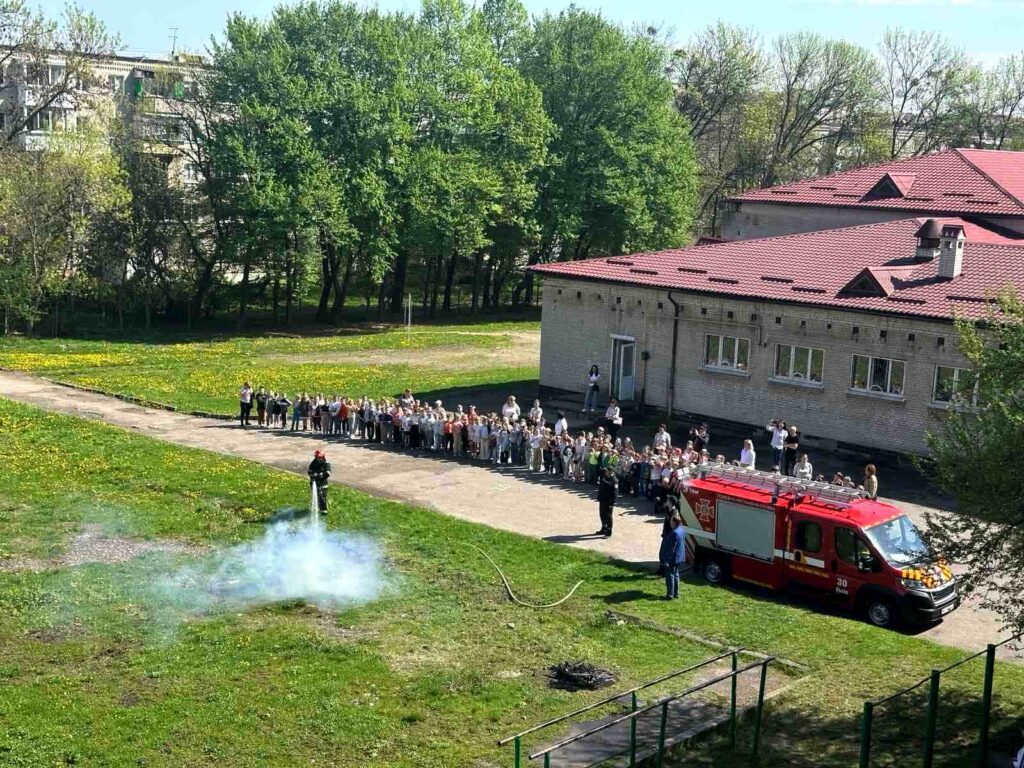 показове гасіння пожежі різноманітними способами: за допомогою первинних засобів – вогнегасників, із використанням шкільної системи внутрішнього протипожежного водопроводу, за участі пожежного автомобіля ДСНС.